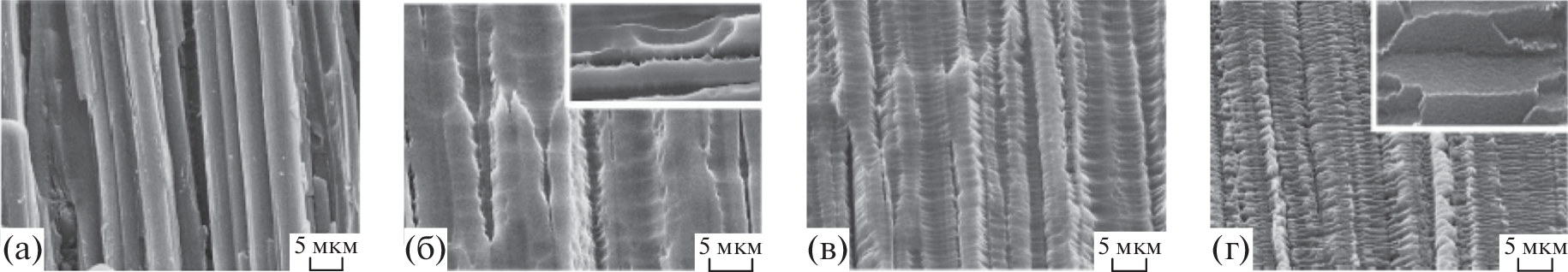 Углеродным волокнам находят применение в производстве автомобилей, самолетов, спортивных товаров, энергетике и биомедицине благодаря их уникальным свойствам, таким как высокая удельная прочность, высокая удельная жесткость, низкий коэффициент теплового расширения и низкая плотность. Были и остаются актуальными исследования и разработки как технологии получения углеродных волокон, так и их модификации для широкого круга применений. Проведенное обобщение накопленного опыта по модификации углеродных волокон показывает, что ионно-лучевая обработка позволяет получать различный по геометрии развитый рельеф поверхности, в частности, вискерообразный и гофрообразый, ориентированный поперек или вдоль волокна. Такая обработка выгодно отличается от обычной вискеризации волокна как многообразием геометрии границы раздела композита и подложки, так и отсутствием проблемы адгезии вискеров с волокном. Ионно-лучевая обработка позволяет модифицировать также структуру поверхностного слоя от аморфизованного до упорядоченного с разной степенью графитации. Облучение химически активными ионами приводит к функционализации углеродного волокна за счет образования, например, нитридов и оксидов углерода. Выбор ионов азота для технологии получения углерод-углеродных и углерод-керамических композитов представляется более предпочтительным, благодаря менее жестким требованиям к температуре облучаемого волокна. Для ионно-лучевого гофрирования поверхности углеродного волокна на основе полиакрилонитрила необходим лишь его нагрев выше температуры динамического отжига радиационных нарушений. К значительному увеличению производительности ионно-лучевой обработки приводит использование ионов гелия технологических плазменных ускорителей.