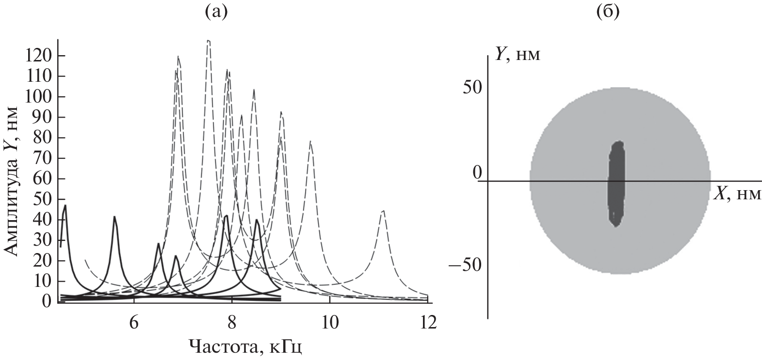 In scanning probe microscopy, the various types of force interaction probe sensors are used. Silicon cantilevers with optical registration of their deflection under the influence of force interaction with the surface under study are the most widespread. Also “self-sensing” probe sensors based on a silicon cantilever or piezo tubes using piezoresistive or piezoresonance principle for measuring their deflection, respectively, are known. In this work a “self-sensing” piezoresonance probe sensor was investigated. The sensor is a piezo tube, at the free end of which a W needle with a length of several millimeters is fixed. It is generally assumed that the spatial resolution of SPM probe sensors is due to the radius of the sphere at the apex of the needle tip. However, in the oscillatory modes of scanning probe microscopy operation the “spot” of the probe’s contact with the sample can be blurred, impairing the spatial resolution. In this paper the amplitude-frequency characteristic of the piezo-tube – W needle system and the size of the effective contact spot of the probe with the sample were calculated by finite element method. The calculation results are compared with the experimental frequency response curve.