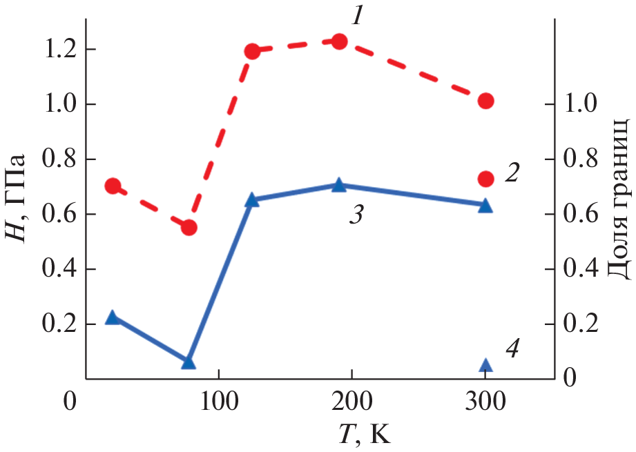 The microstructure, mechanical and acoustic properties of copper samples in the initial state and after barocryodeformation in different modes have been studied. It is shown that cryogenic temperatures contribute to significant grain refinement due to the activation of mechanical twinning processes; a homogeneous structure with an average grain size of 5–8 µm is formed. Barocryodeformation at temperatures up to 125 K leads to a decrease in plasticity and a significant increase in hardness. A further decrease in temperature, on the contrary, contributes to a significant increase in plasticity, as well as a decrease in hardness. A correlation has been noted between the median frequency of acoustic emission and the hardness value at all barocryodeformation temperatures.