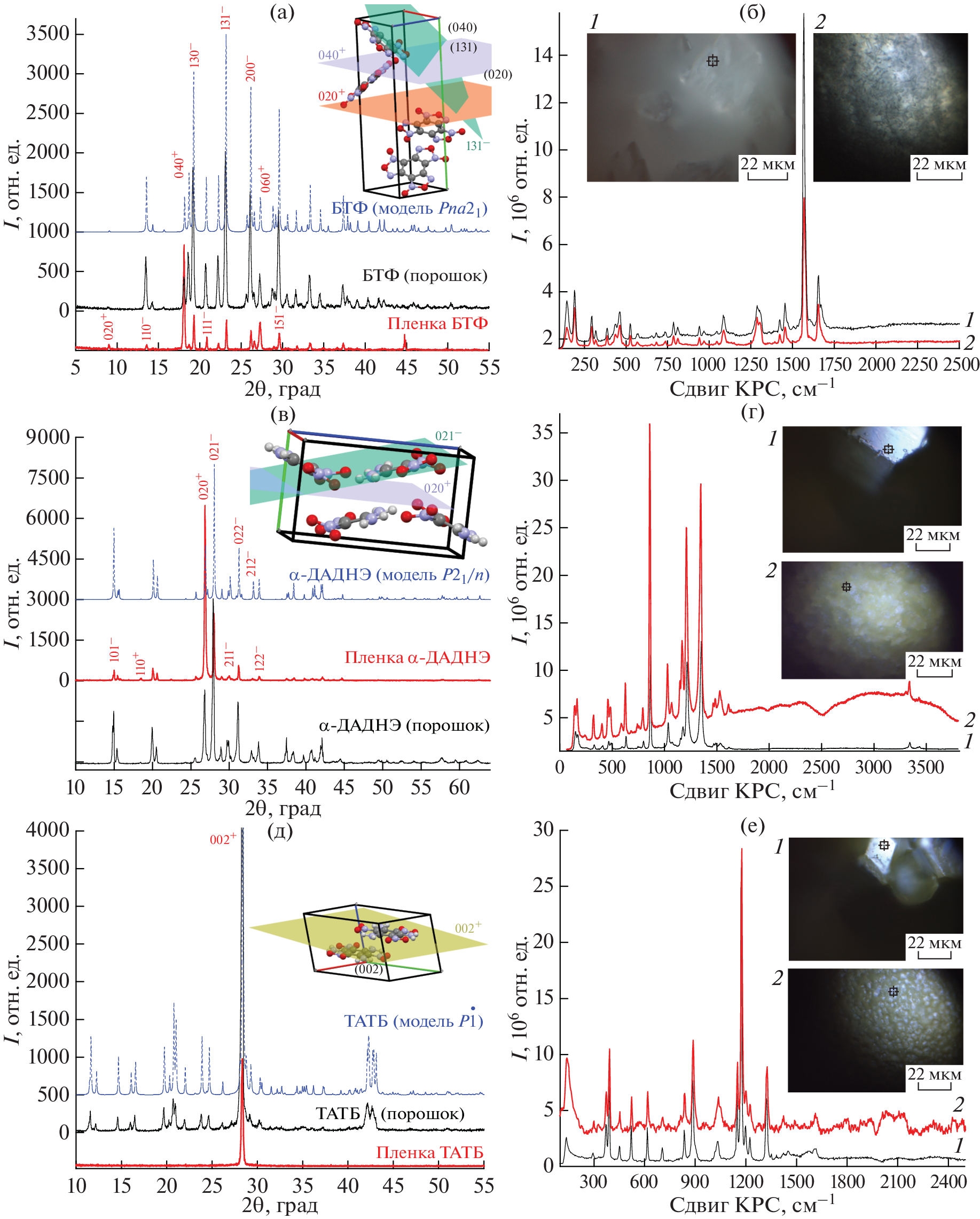 Fine Crystal Structure, Spectral Properties and Surface Micromorphology of 1,3,5-Triamino-2,4,6-trinitrobenzene, 1,1-Diamino-2,2-dinitroethylene, and Benzotrifuroxane Films Obtained by Crystallization from a Gas Phase