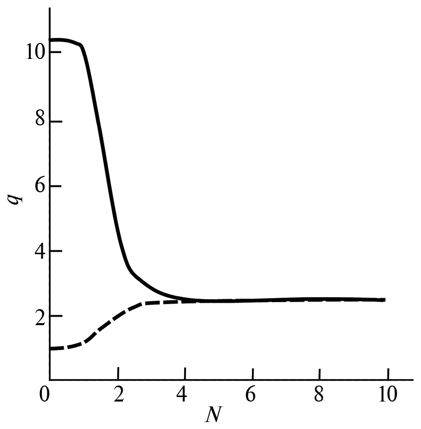 Соответствующая система уравнений Эйлера для определения двух параметров порядка после подстановки qx = qcos(kz), qy = qsin(kz), где k – вектор распространения, приобретает вид системы двух алгебраических уравнений: