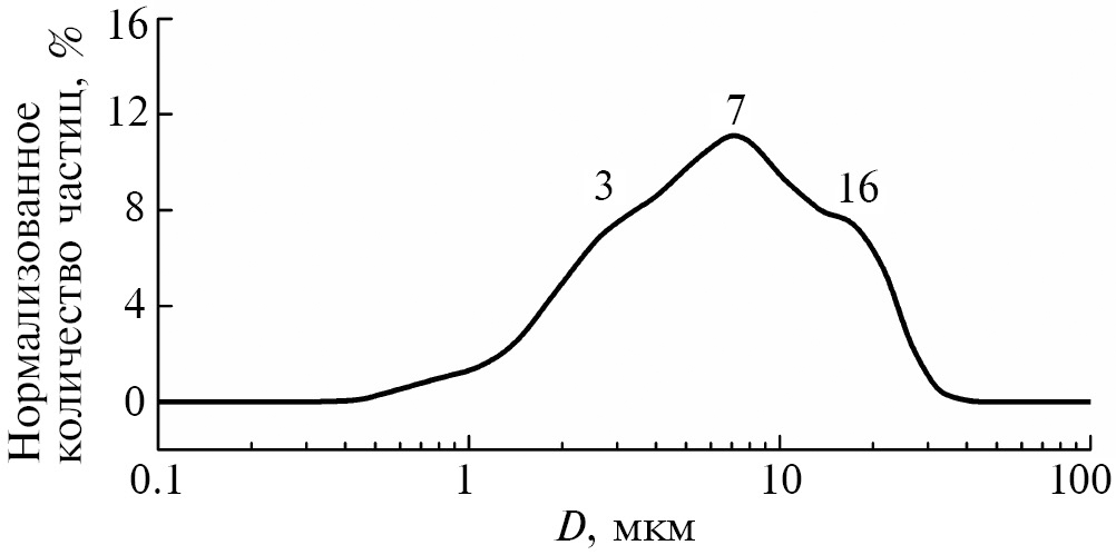 Рис. 3. Гранулометрический состав порошка mGd2O3.