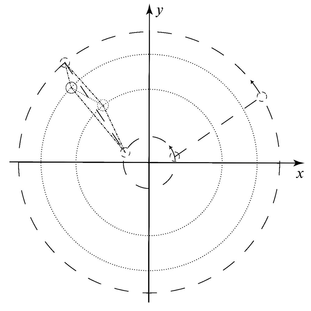 5. Fig. 4. Schematic representation of the procedure for optimizing the relative position of subsystems A and B. The dotted line shows the position of subsystem A, the dashed line shows the position of subsystem B, and the dashed line shows the expected position of subsystem B relative to subsystem A.
