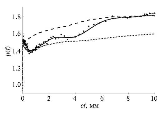 Зависимость показателя степени µ в (5) от времени в [13–15] предложено брать из найденной в результате моделирования зависимости , вычисляя отношение
