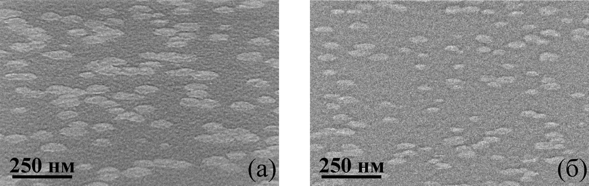 На рис. 4 представлены РЭМ-изображения пленок W толщиной 20 нм, осажденной на SiO2/Si, и толщиной 30 нм, осажденной на Si, полученные при угле падения электронного пучка 70°. Видно, что включения α-W имеют вид лакун в матрице β-W.