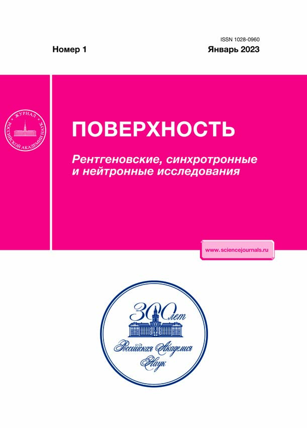 Исследовано влияние мощного импульсного лазерного излучения, создаваемого в установке ГОС 1001 в режиме модулированной добротности (плотность мощности потока q = 1.2 × 1012 Вт/м2, длительность импульса τ0 = 50 нс, число импульсов N = 1–4) в вакууме, на пористую структуру поверхности образцов ванадия, сформированную после имплантации ионов гелия (энергия 30 кэВ, доза 2.0 × 1023 м–2, плотность потока ионов 4.8 × 1018 м–2 · с–1, температура ~500 К), а также на ее микротвердость, которую определяли двумя способами – по восстановленному отпечатку и методом кинетического индентирования. Показано, что облучение ионами гелия вызывает упрочнение ванадия примерно в два раза, а значения микротвердости, определяемые по восстановленному отпечатку, несколько ниже значений кинетической микротвердости. Установлено, что в обоих случаях в результате разрушения мишеней под влиянием лазерного излучения появляется лунка, окруженная бруствером, за которым расположена зона термического влияния. В этой зоне наблюдается эрозия, вызванная разрушением куполов пузырей-блистеров, заполненных имплантированным гелием и атомами примесей (С, О, N), присутствующими в жидком металле. Установлено, что с увеличением количества лазерных импульсов микротвердость в лунке снижается, в то время как узкая область вокруг нее закаливается, а при дальнейшем удалении от лунки микротвердость приближается к значениям, соответствующим имплантированному ионами гелия ванадию.