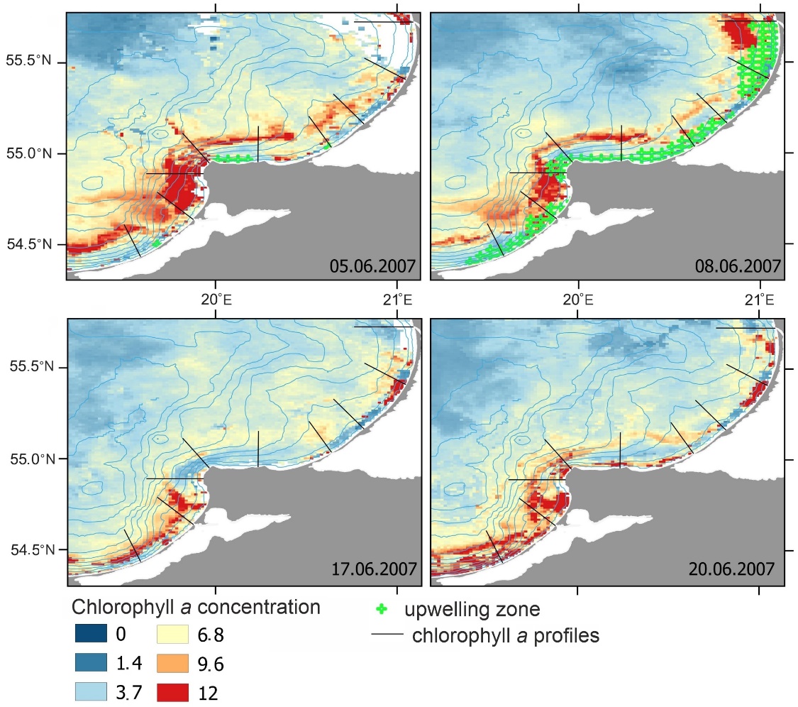 - Dabuleviciene, T., Vaiciute, D. and Kozlov, I.E., 2020. Chlorophyll-a Variability during Upwelling Events in the South-Eastern Baltic Sea and in the Curonian Lagoon from Satellite Observations. Remote Sensing, 12(21), 3661. https://doi.org/10.3390/rs12213661