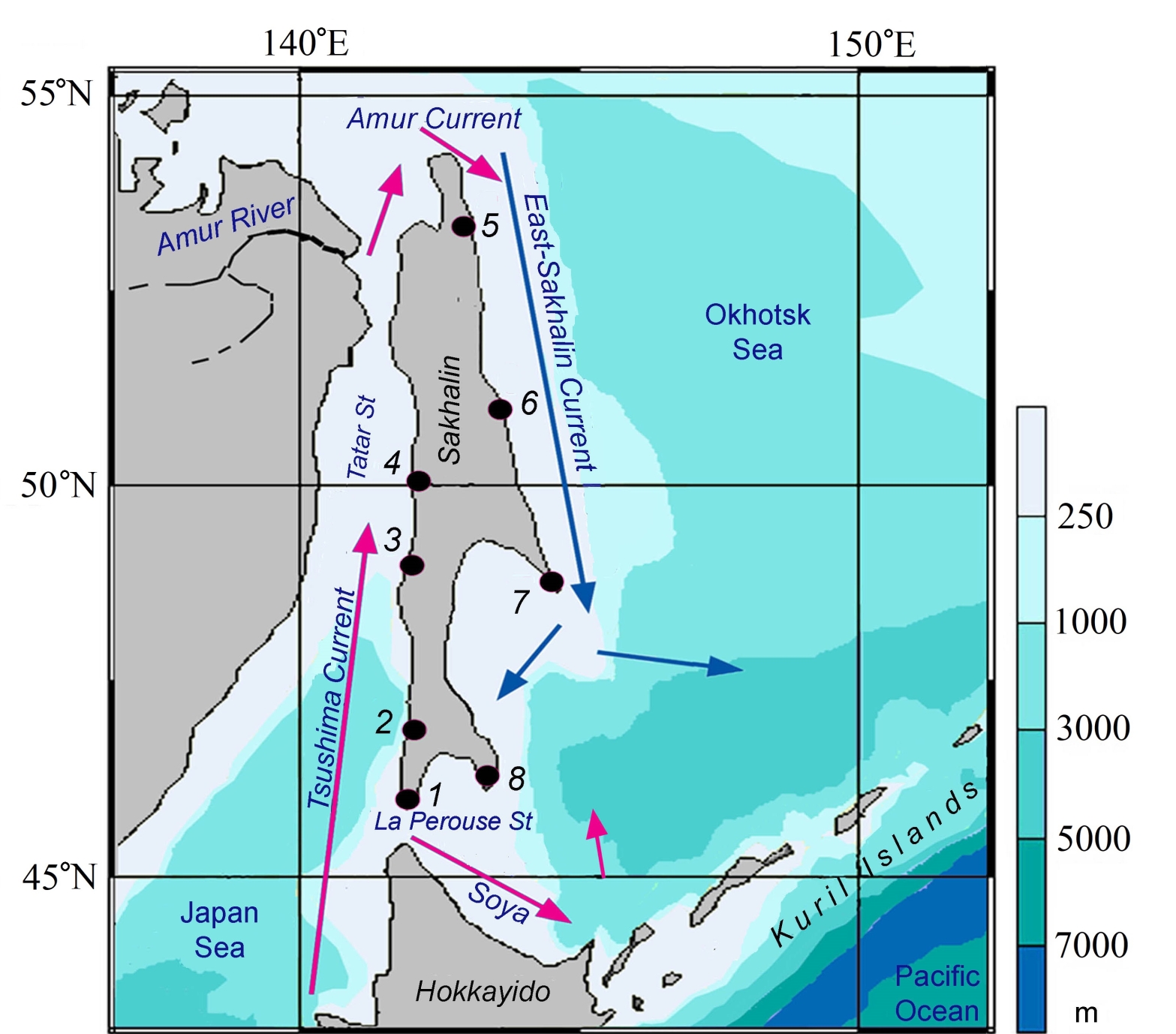 - Djakov, B.S., 2006. Year-to-Year Variability of Water Circulation in the Tatar Strait in Summer. Izvestiya TINRO, 144, pp. 281-299 (in Russian).