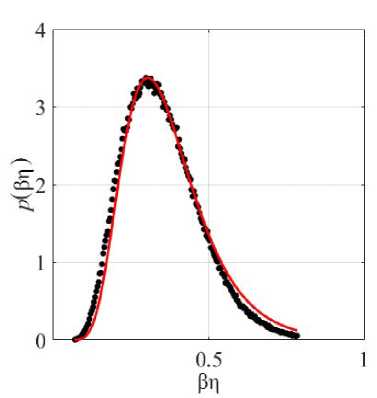 Consider probability density p(βη). Figure 1 shows its distribution obtained for all measured values by black dots. The probability density is satisfactorily described by the function shown in Fig. 1 by red line: