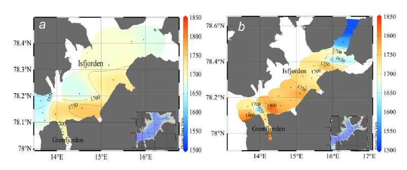 At the same time, there are very few measurements of biogeochemical structure parameters of waters and the carbonate system carried out directly in Isfjorden itself, and all of them relate to the summer period [12, 13]; such measurements for Grønfjorden and Billefjorden are absent.