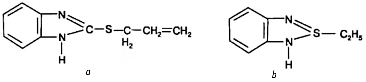 The antihypoxant almid (2-allylthiobenzimidazole hydrochloride) is a derivative of bemityl (2-ethylthiobenzimidazole hydrobromide monohydrate) (Fig. 1). Both substances have a moderate psychostimulant effect that enhances physical and mental performance [3]. They activate antioxidant systems, reduce asthenic phenomena of different origins, and have an antihypoxic effect that protects the brain, myocardium, and liver.
