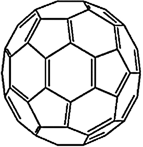 Несмотря на большое количество атомов, молекулы фуллеренов компактны (рис. 1). Диаметр молекулы С60, представляющей собой сферу, равен 0,714 нм, что сравнимо с размерами обычных органических молекул и меньше, нежели размеры сложных органических молекул. Отсюда следует, что по своим размерам фуллерены вполне совместимы с обычными биологическими мишенями [11].