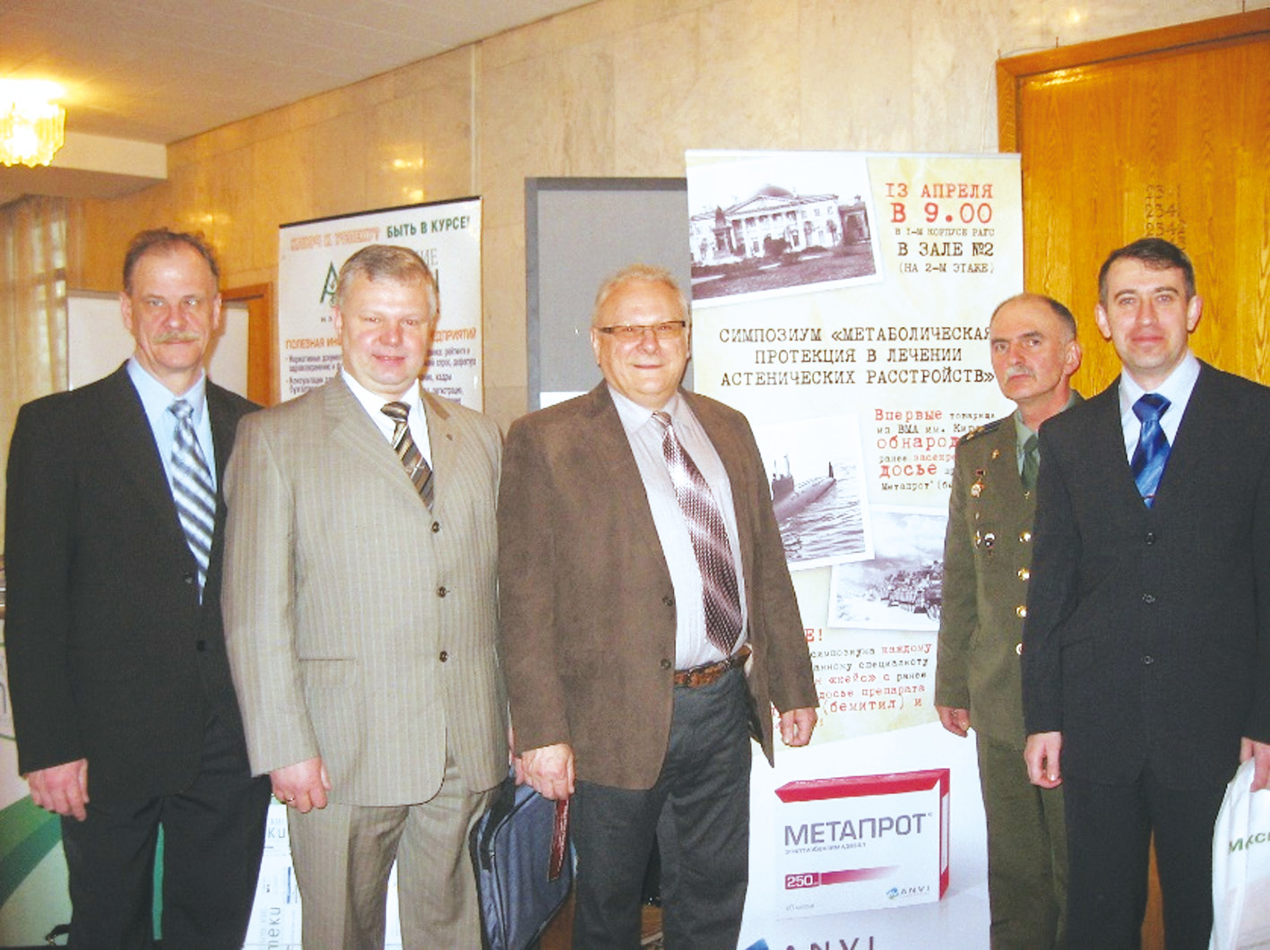 Fig. 5. Russian National Congress “Man and Medicine”. Moscow (2009). Symposium “Metabolic protection and treatment of asthenic disorders”. From left to right: V. V. Vostrikov, P. V. Rodichkin, P. D. Shabanov, V. A. Zemskov and V. P. Ganapolsky