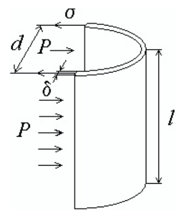 где σ - механические напряжения в стенке резервуара толщиной δ, – механические напряжения в стенке резервуара при давлении