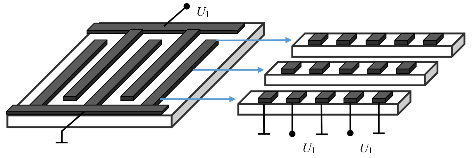 Рис. 3. Представление электродов ВШП в виде элементарных блоков P-матриц