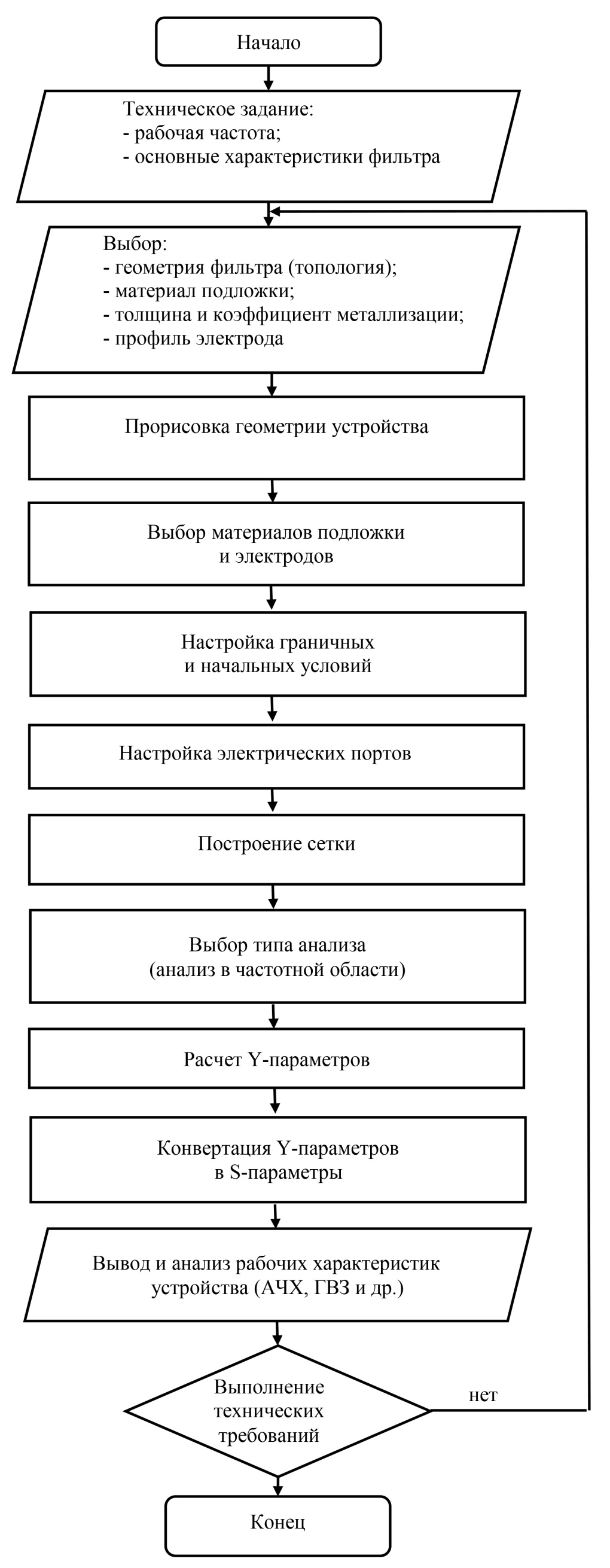 Решение задачи по расчету фильтра с помощью МКЭ можно свести в блок-схему (рис. 5), которая разбивает одну большую задачу на несколько этапов.