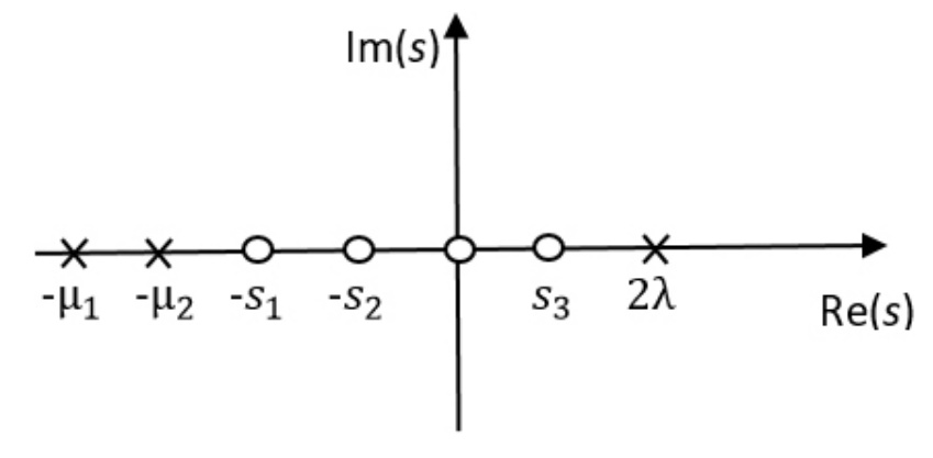 На рис. отображены нули и полюса отношения на комплексной s – плоскости для исключения ошибок построения спектрального разложения. На рис. полюсы отмечены крестиками, а нули – кружками.