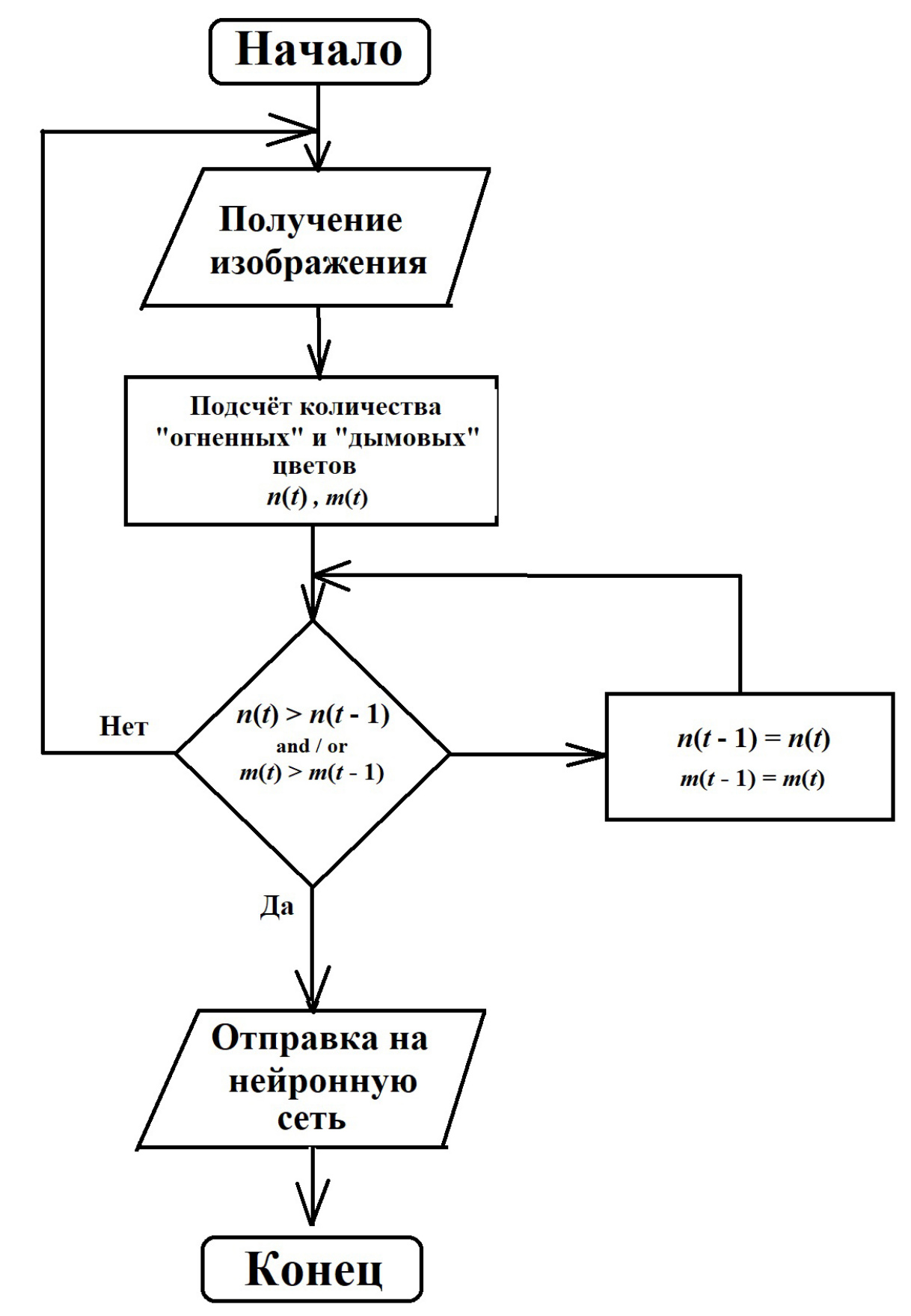 В настоящее время для мониторинга возгорания в лесных массивах нашли применение нейросетевые методы определения возгорания. К настоящему времени разработаны такие системы как проект «Прометей», Видеодетектор огня, метод университета искусственного интеллекта [1–4]. Данные методы позволяют определить возгорание с точностью более 90 % для чего используют комбинацию реккурентных и светрочных нейронных сетей. Согласно [2; 3] время необходимое для определения возгорания составляет от 5 до 20 с для камеры системы видеонаблюдения. Данная скорость определения возгорания является довольно большой при условии использования 1 камеры системы видеонаблюдения, так при увеличении количества камер систем видеонаблюдения пропорционально увеличивается и время необходимое для определения возгорания, так для определения возгорания с двух камер с использованием нейросетевого метода необходимо подавать на нейронную сеть два видеопотока. Подачу видеопотока можно осуществлять двумя способами: