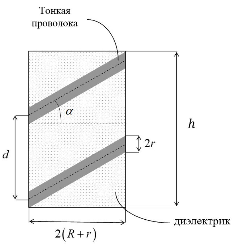 Рис. 2. Структура ячейки кирального метаматериала на основе тонкопроволочной спирали