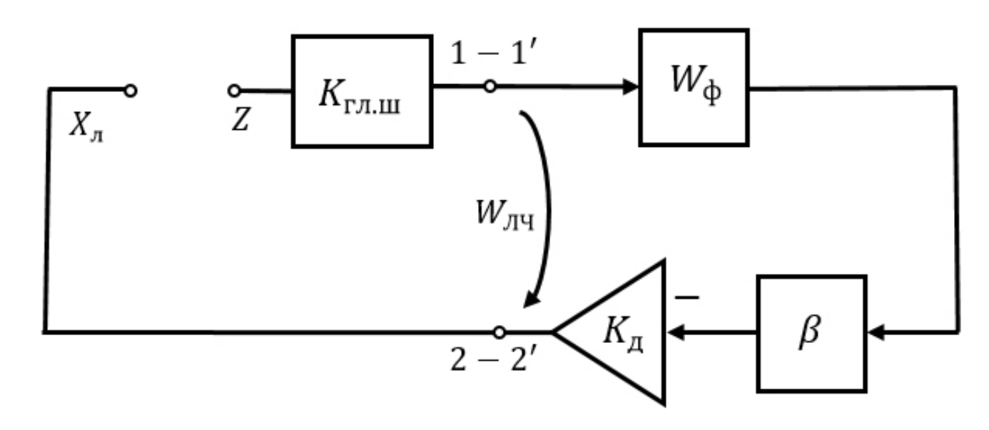 К подобным простейшим блок-схемам могут быть приведены блок-схемы любых замкнутых систем, содержащих один нелинейный элемент, с использованием алгебры передаточных функций.