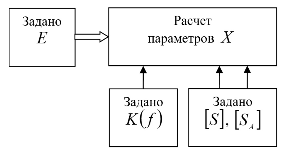 Для описания антенных решеток целесообразно использование матричной модели с поэлементным учетом эффектов взаимной связи излучателей. Согласно матричной модели, распределение напряженности электрического поля, создаваемого системой излучателей в зоне ближнего излученного поля определяется матрицей рассеяния системы входов парциальными распределениями полей, соответствующих элементу решетки с диаграммой направленности при возбуждении их входов единичной падающей волной и при наличии согласованных нагрузок, подключенных к остальным входам, и матрицей рассеяния распределительного устройства