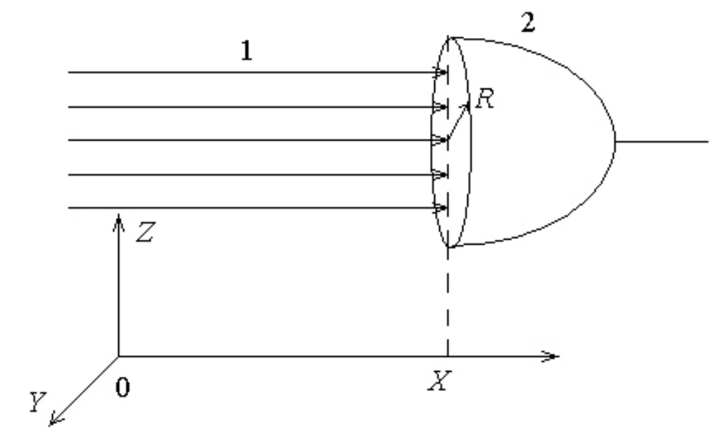 Let us consider fluctuations in the energy flow or power of electromagnetic wave 1 due to atmospheric turbulence incident on receiving antenna 2 (Fig. 1) [10]. We call this process the flickering of the radio signal. Radio signal flickering creates interference and impairs the transmission of information over a radio channel. In Fig. 1, the origin of the coordinates is conventionally shifted down relative to the center of the receiving antenna 2. We will also conventionally assume that turbulence begins at position Х = 0 and the receiving antenna is located on the X axis.