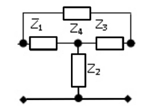 Перекрытое Т-образное соединение четырех сопротивлений Z1,2,3,4 (рис. 5):