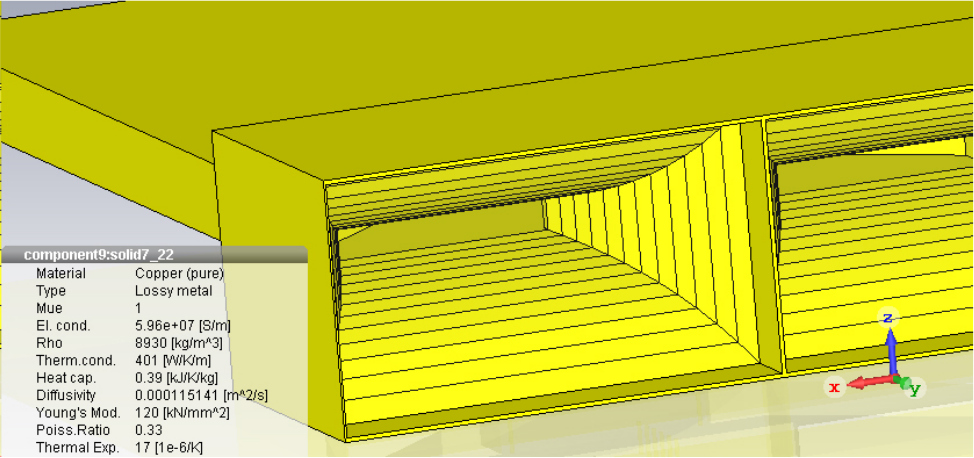 Рис. 10. Фрагмент диэлектрического заполнения делителя мощности и рупорных излучателей