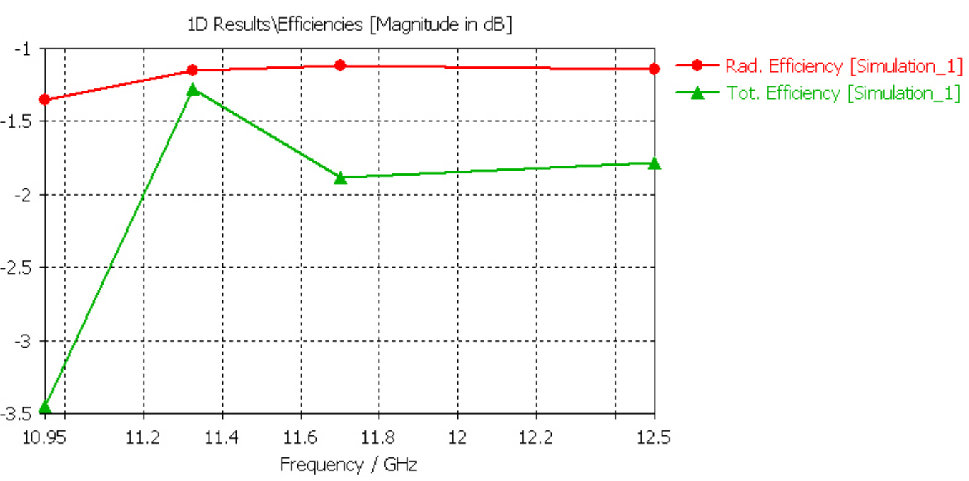 Рис. 13. КПД ФАР при отклонении луча на угол 45° от нормали, дБ