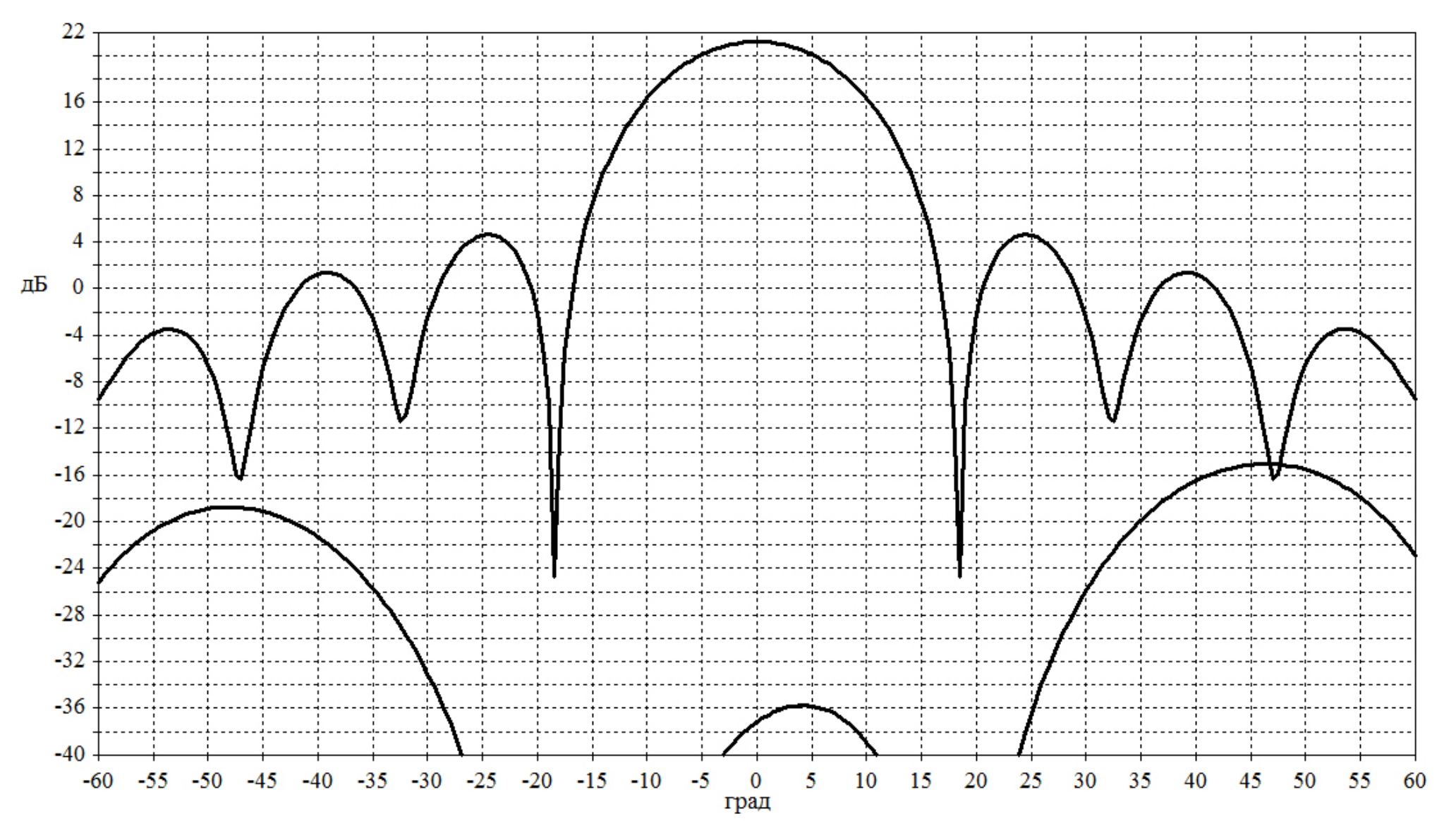 Для получения в диапазоне прима максимально возможных значений произведения hAhпр в качестве ДН используемой при расчете поверхностей зеркал, должна быть выбрана ДН АР 2 × 2 С(Rx). Выбор ДН на частоте 3,7 ГГц позволил получить произведение hAhпр в области значений от 0,73 до 0,8, которые сопоставимы со значениями, реализуемыми в ДЗА с рупорным облучателем.
