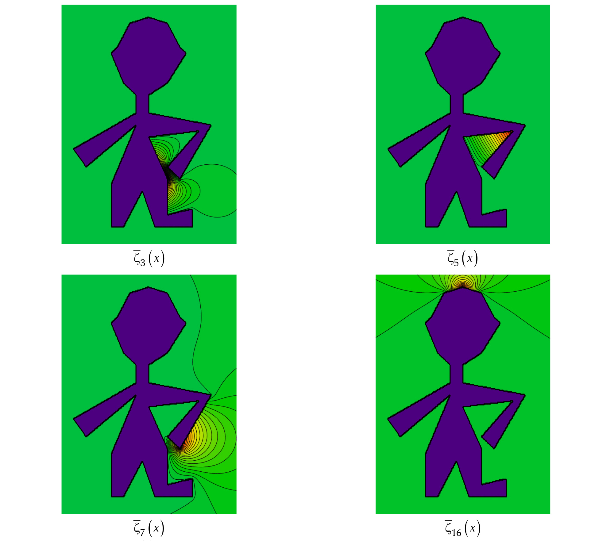 На рис. 2 показаны результаты расчета линий уровня различных внешних БК для рассматриваемого в приведенном листинге