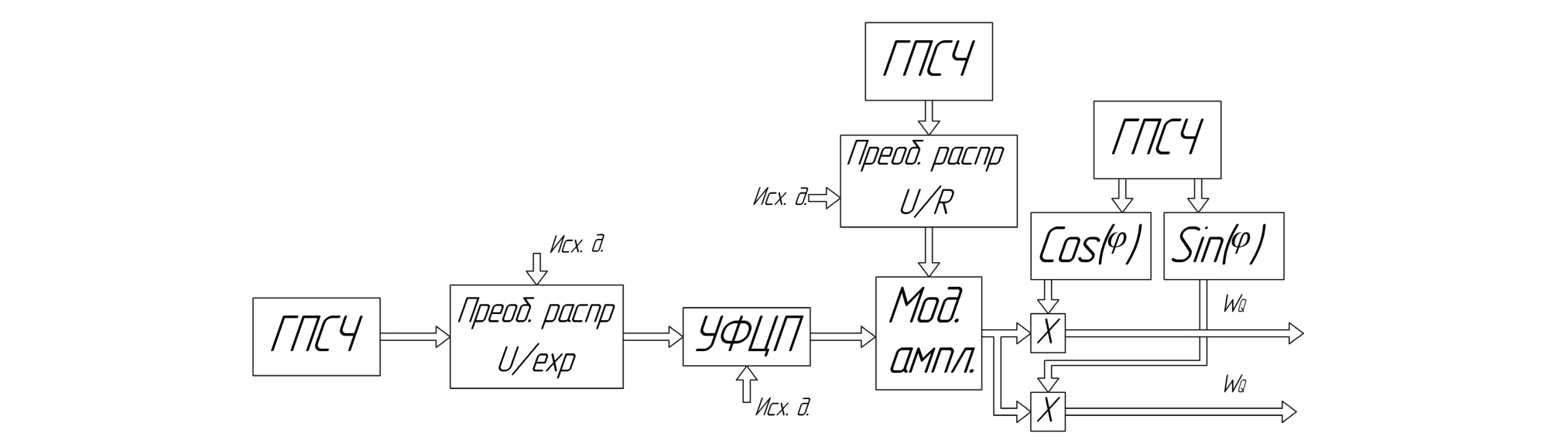 - Блок модуляции амплитуды предназначен для формирования амплитудного распределения и формирования I/Q-составляющей [29; 30];