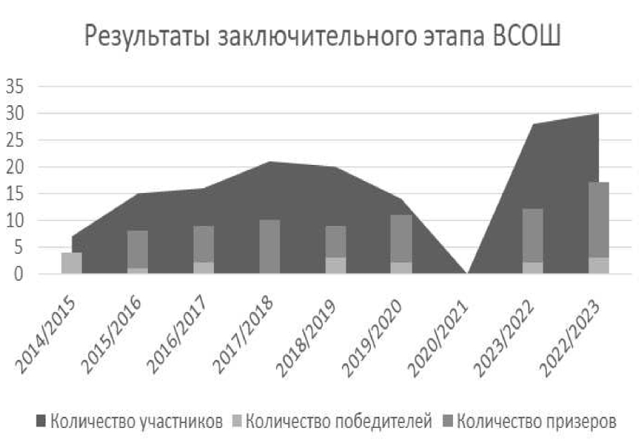 Отметим, что на региональный этап олимпиады 2013/2014 учебного года было приглашено 186 учащихся пятых-одиннадцатых классов, что составило 25% от общего числа участников муниципального этапа. В 2022/2023 учебном году число приглашенных на региональный этап составило 295 учащихся пятых-одиннадцатых классов. Таким образом, численность участников регионального этапа увеличилась в 2,75 раза, в чем, несомненно, отражена заслуга преподавателей и тренерского состава Университета Иннополис, а также педагогических коллективов образовательных учреждений республики, осуществляющих подготовку мотивированных школьников. Подготовку к республиканскому этапу олимпиады школьников на базе Университета Иннополис реализуют тренеры из числа призеров и победителей заключительного этапа Всероссийской олимпиады школьников по информатике, победители и призеры IOI, чемпионы мира ICPC. Подчеркнем, что Республиканский этап всероссийской олимпиады школьников проводится для учащихся девятых-одиннадцатых классов, поэтому для учеников с пятого по восьмой классы разработана оригинальная Республиканская олимпиада по информатике. Однако качество подготовки учащихся младшего звена на базе Университета Иннополис позволило некоторым из них не только попасть в число участников заключительного этапа всероссийской олимпиады, но и стать там победителями и призерами. Учащиеся 7-8 классов составили конкуренцию старшеклассником в олимпиаде высочайшего уровня. Проведение Республиканской олимпиады по информатике для школьников среднего звена также имеет большое значение для развития олимпиадного программирования, для повышения рейтинга и компетенций участников.