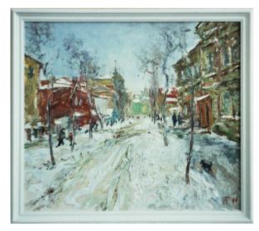 Экспериментальные данные основаны на анализе и сопоставлении образного ряда творческих работ. Живописные произведения «Утро на Баумана» и этюд «Зимний денек» выполнены с натуры, с точной цветовой и тоновой передачей изображения городского пейзажа. Классические композиции без новизны композиционных решений (рис. 1, рис. 2). Следует отметить, что фундаментальные знания реализма, обладание академической школой рисунка и живописи для современного художника недостаточны при отсутствии образного мышления.