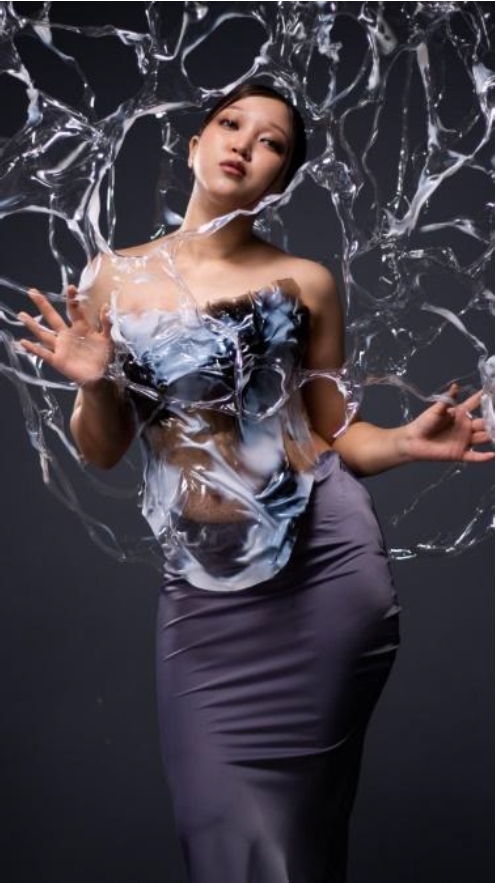 Looking back to the sheath of the costume, the fractals of the crystal image by Ashken D. are described in this way: “... the emphasis in the image is the figures in the form of a pyramid, moving from the chest to the left shoulder. They are made of satin fabric glued to a felt base; in contrast, a relief glove is worn on the left hand. A modular method was used". This is an example of an intellectual search for a form, building architectural forms outside of human volume and gravity, which puts the model in conflict with established traditions. This is a process of the primacy of form and emptiness, for which there are no units of measurement, because it is a state of static omnipresence where there is no time. To complete the process of finding a form, boundaries are needed, and conceptually connect each point of the end and beginning of the first form, which presupposes the architecture of matter on the scale of the Universe, therefore the geometry of the polyhedron appears, like a diagram of the form. The creation of the first man, his bodily reflection, is a shell, as an ideal balance of the bodily and abstract, which served to create the philosophical abstraction of form. The image takes away from the anthropomorphic properties of the suit and endows it with the properties of an abstract design-object with the aim of in-depth study of one specific de of it - shaping outside the rules. Exploration of silhouettes and proportions. Deconstructionist designers break conventional expectations in silhouettes and proportions, creating contrasting, heavy shapes, and contrasts, eliminating the image of gravity in forms, also in clothing, and in the shell of buildings. Deconstructivism also involves playing with materials and textures such as glass, metal, concrete and composites to create unique and complex surfaces. This may include experimenting with volume, strange lines, and unexpected details (see photo No. 7 S. Nurasyl).