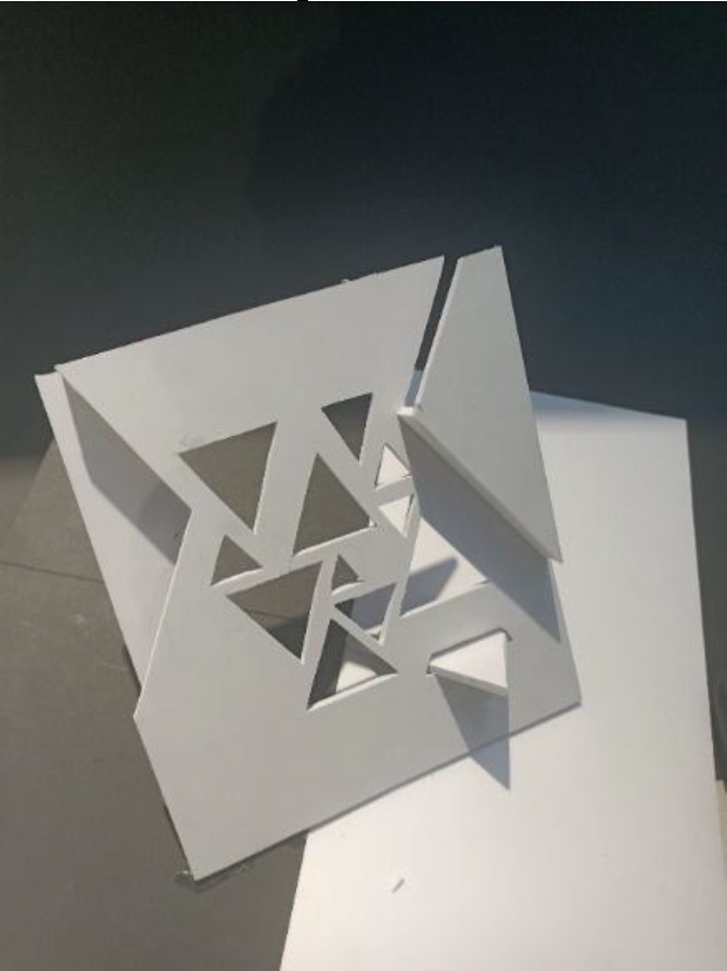 Architectural experiments were carried out in the model, (see photo No. 8 Dauletuly A. model of yurt, Photo No. 9 Dauletuly A. model of shanyrak): deconstruction in experiments mechanically breaks the shape of an object into its component parts, revealing how such a composition in a new state works.