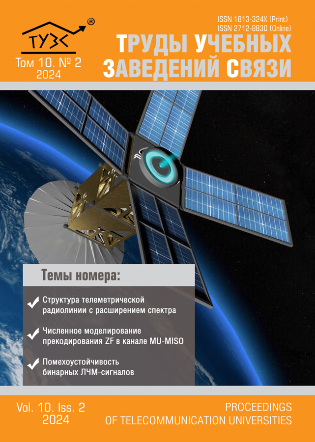 Рассмотрены результаты исследования помехоустойчивости приема сигналов с линейной частотной модуляцией в телекоммуникационных системах передачи информации. Получены аналитические выражения синтеза бинарных сигналов линейной частотной модуляцией с управляющими параметрами. Исследована зависимость структуры этих сигналов от формирующих параметров. Методом моделирования решена оптимизационная задача поиска максимального значения евклидова расстояния для сигналов линейной частотной модуляции бинарной структуры. Установлены различия в помехоустойчивости приема сигналов линейной частотной модуляции по отношению к бинарным структурам противоположных и ортогональных сигналов. Представлены эпюры временных и спектральных фрагментов сигналов линейной частотной модуляции, поясняющие сущность результатов исследования. Приведены графики сравнительной оценки помехоустойчивости приема бинарных сигналов различной структуры по показателю вероятности битовой ошибки в зависимости от отношения сигнал/шум в канале. Раскрыта сущность корреляционной обработки сигналов с большой базой.