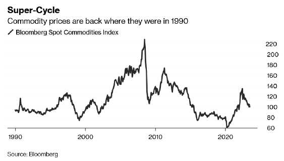 Рис. 1. Динамика индекса товарных цен за 1990–2024 гг.