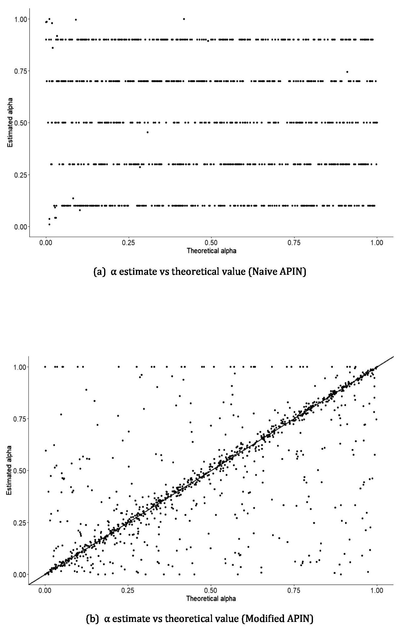 Still, the most important flaw of the PIN model was revealed by Duarte and Young (2009). They showed that empirically buyer and seller initiated trades have positive correlation in the stock market, which PIN fails to capture, since this correlation can only be negative theoretically. Thus, they introduced a modified version Adjusted PIN (APIN) which allows for positive correlation. By comparing the results of these two models, they introduce the hypothesis that original PIN model might be a liquidity measure rather than a metric of informed trading. APIN, being the nested model of PIN, inherits both FPE and local maximum problems. We propose the solution in the fashion of Lin and Ke (2011) and Yan and Zhang (2012) for PIN. There is a similar attempt to tackle these issues, outlined in the preprint paper of Ersan and Grachem (2023), who introduced the same modification to the likelihood function, but different version of initial parameters algorithm.