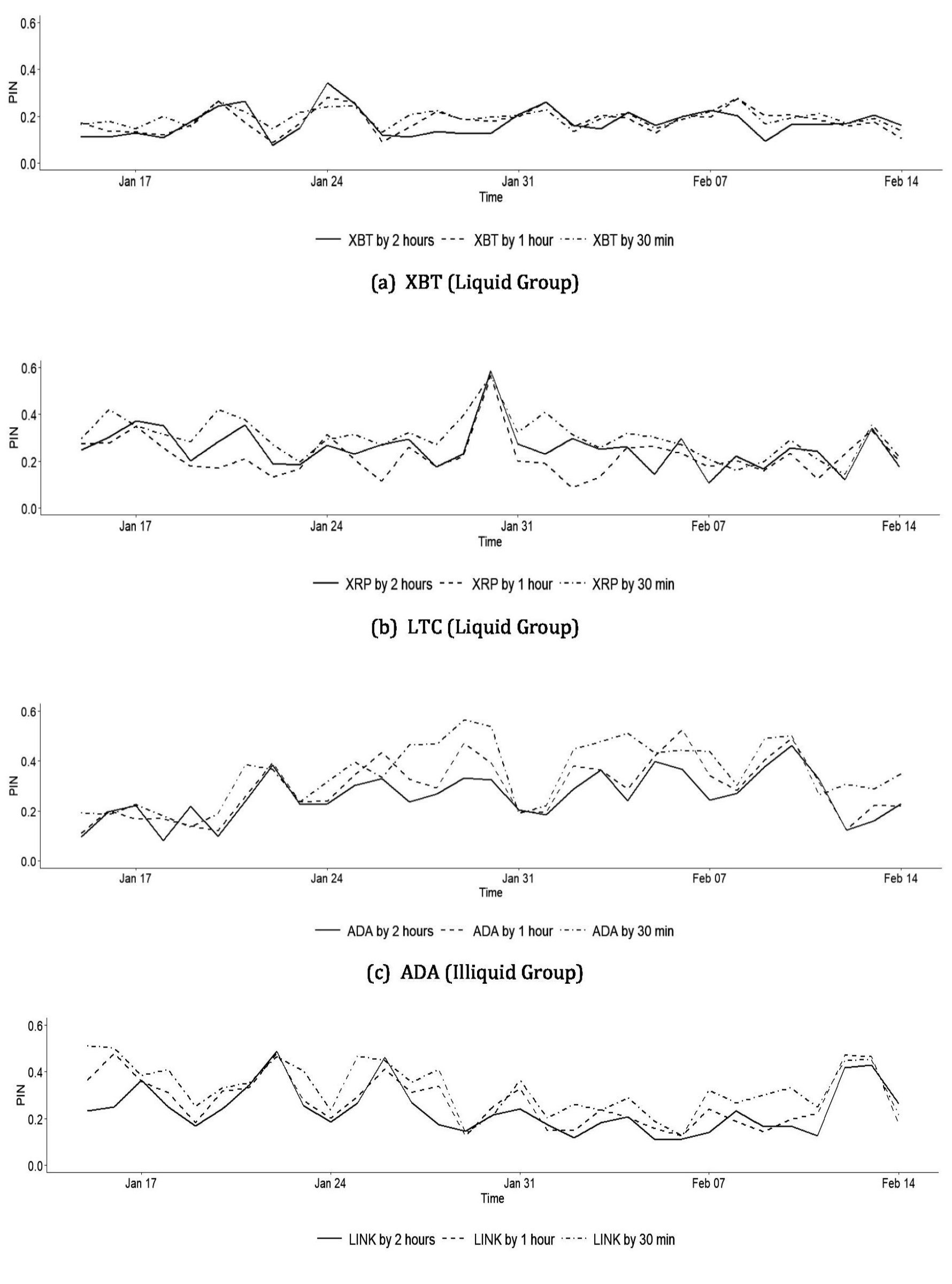 Fig. 12. PIN (Aggregation of trades by 2 hours vs 1 hour vs 30 minutes)
