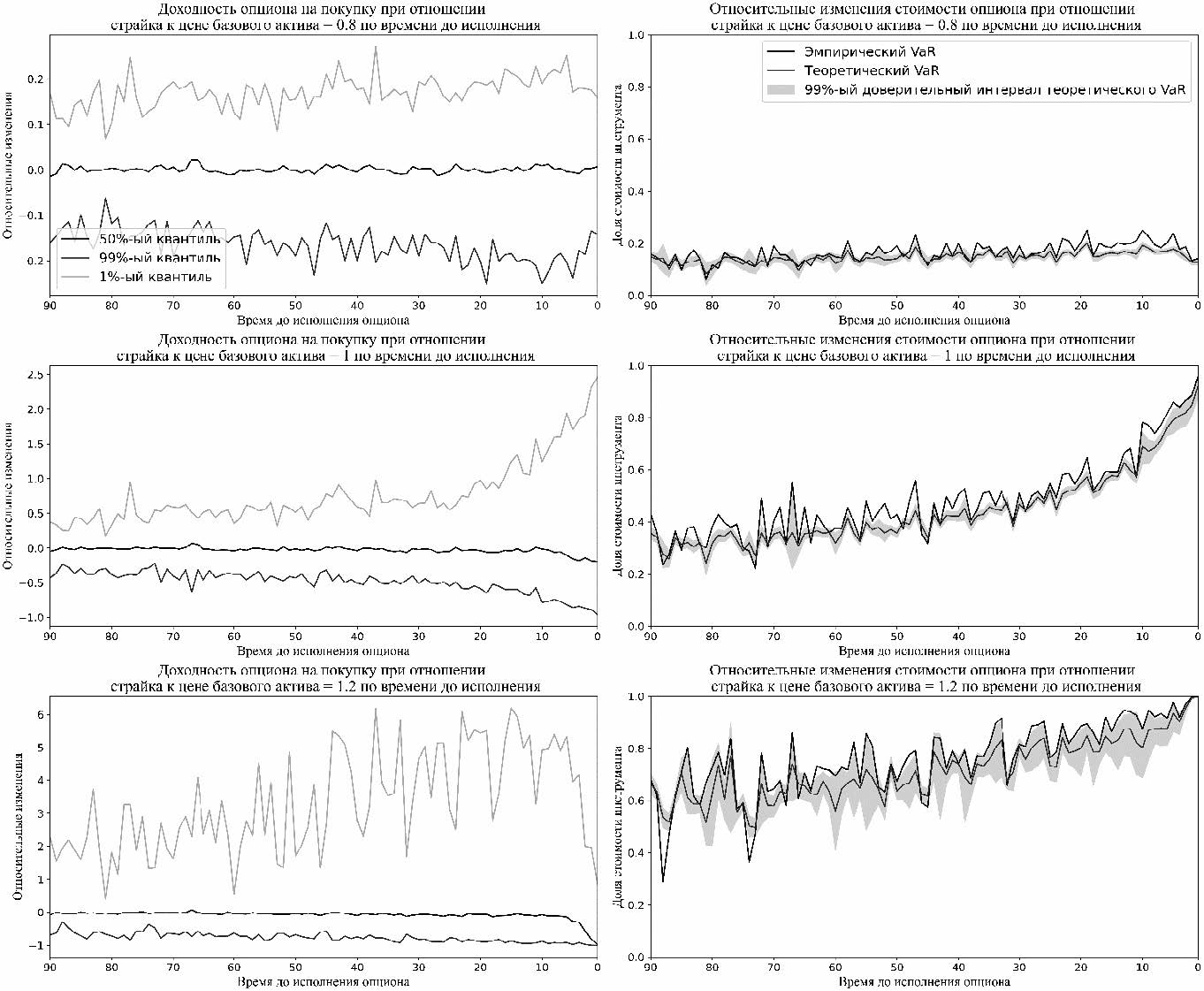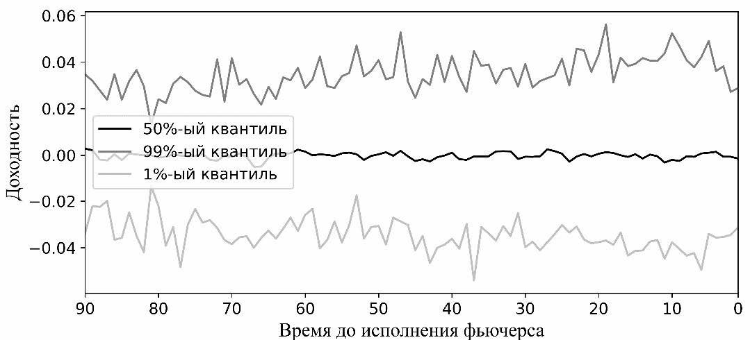Так как риск и риск-параметры опциона могут зависеть от срока до исполнения, в данной работе предлагается сначала исследовать риск опциона отдельно как самостоятельную величину. Величина риска, с которым сталкивается центральный контрагент согласно международной методологии [CPSS – IOSCO, 2012], соответствует эмпирическому квантилю потерь на горизонте как минимум в один торговый день: