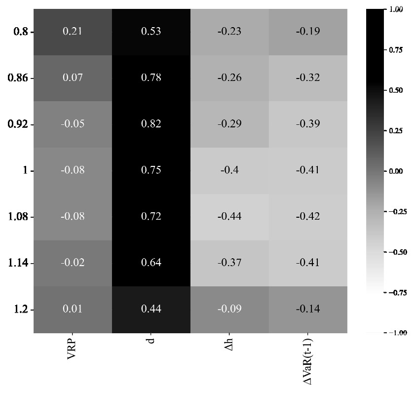 Далее для оценки влияния экзогенных факторов на риск опциона предлагается построение регрессионной модели с различными спецификациями. Сравнение моделей, например, с использованием структуры волатильности или риск-премии за волатильность и без них, позволит оценить влияние различных факторов на уровень риска.