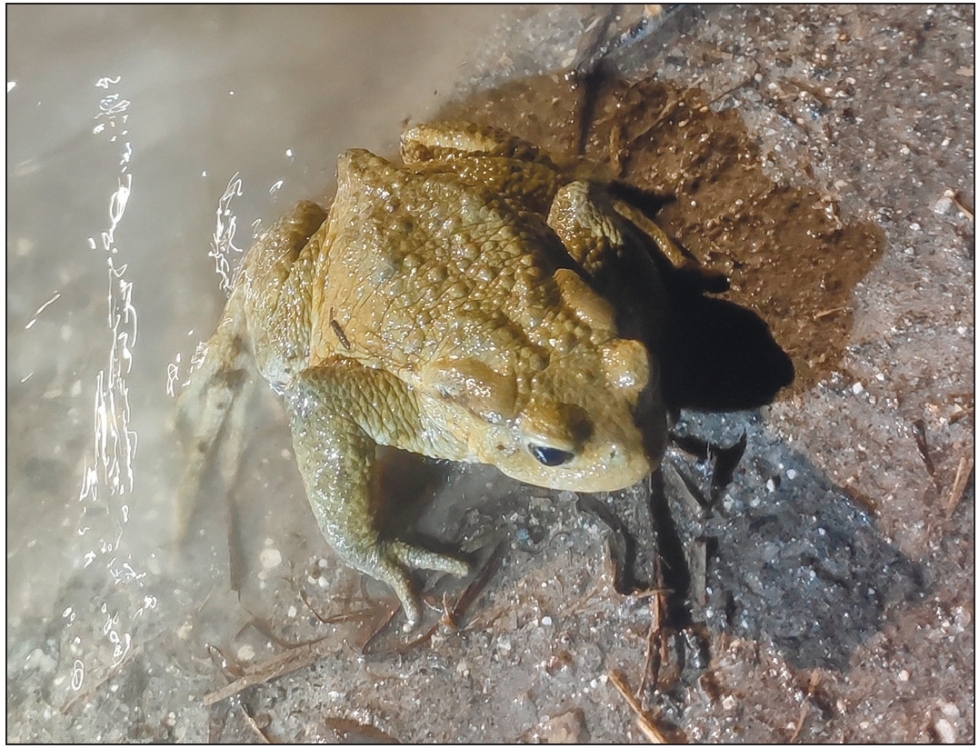 Рис. 1. Самец Bufo verrucosissimus. Ущелье р. Угольная, Предгорный район, Ставропольский край, Российская Федерация, 7 мая 2023 г.