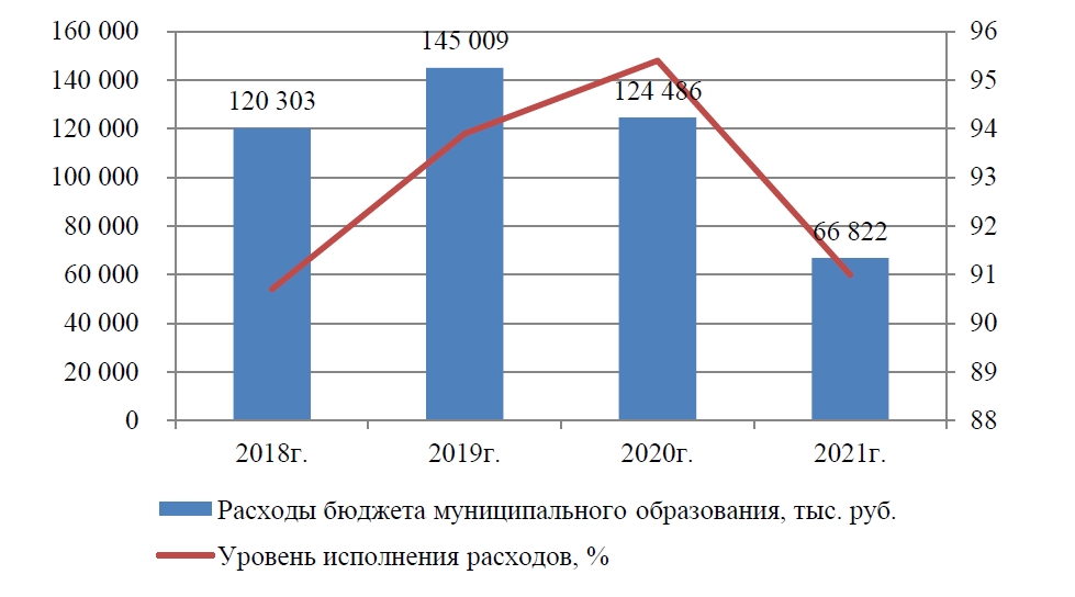 Однако стоит отметить достаточно высокий показатель исполнения расходов на реализацию мероприятий программы: за анализируемый период он не опускался ниже 90%.