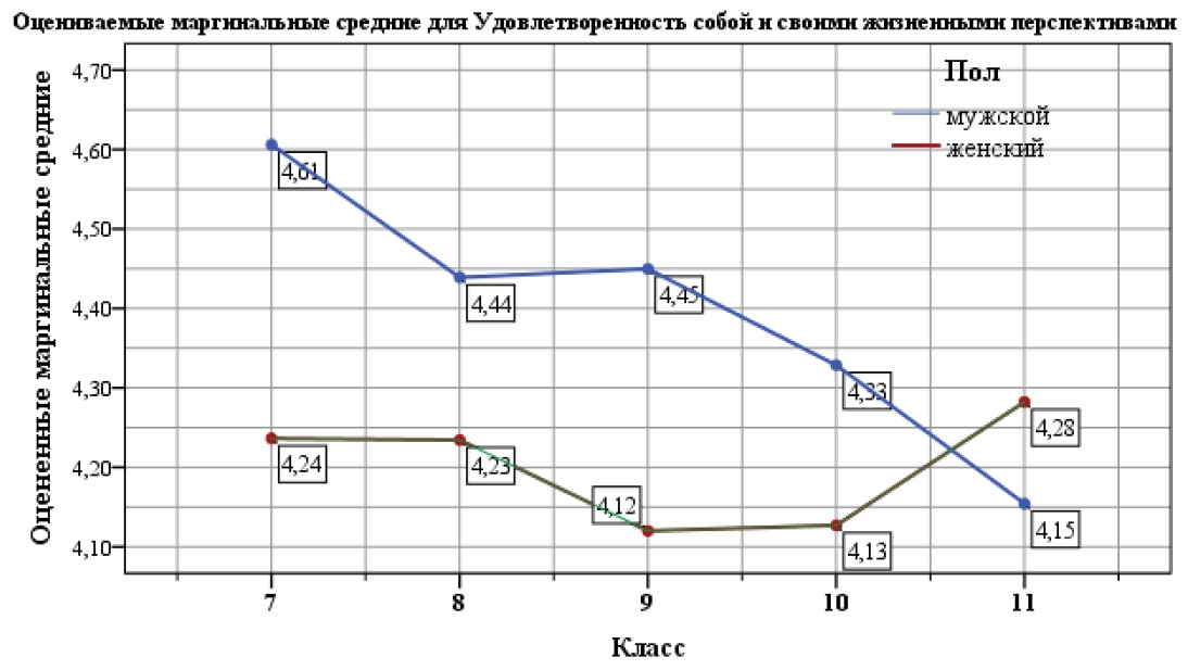 Удовлетворенность собой и своими жизненными перспективами | 2,659 | ,103 |