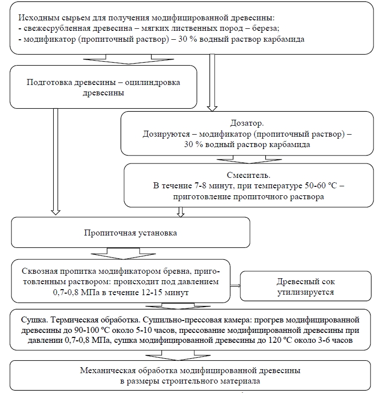 Рисунок 1 – Технологическая схема получения модифицированной древесиныиз мягких лиственных пород
