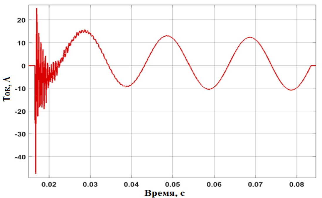 В результате имитационного моделирования получена осциллограмма тока замыкания на землю для случая не оптимальной настройки дугогасящего реактора (рис. 3).
