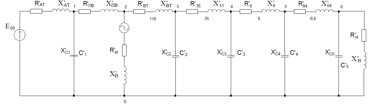 Рисунок 2 – Схема замещения участка электрической сети
