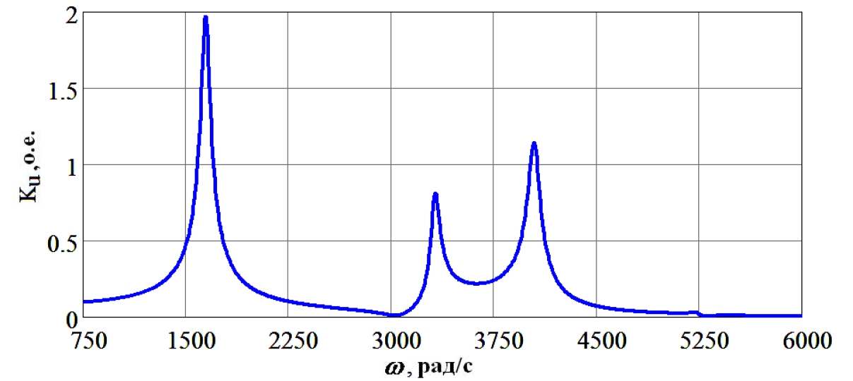 Purpose of research: calculation of frequencies at which the occurrence of resonant modes is possible, determination of the multiplicity of overvoltages in the nodes of the electrical network.