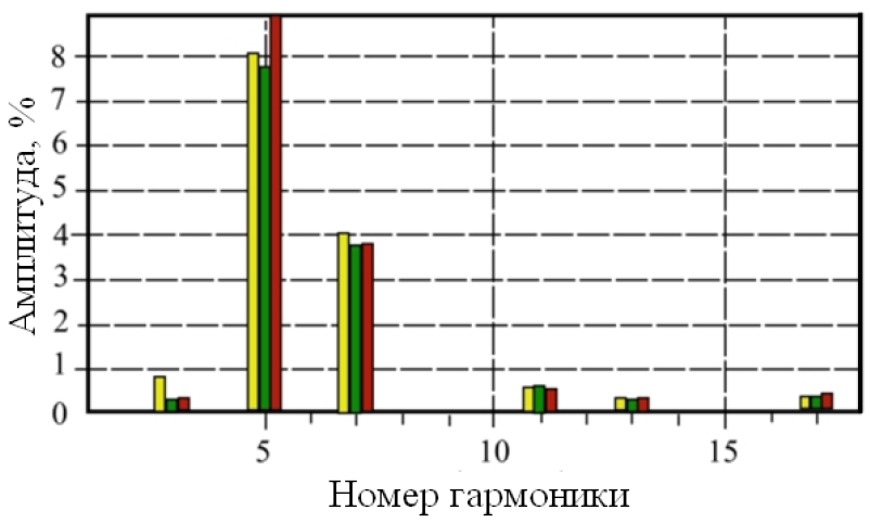 В работе [1] предложена и апробирована на практике авторская методика по определению резонансных режимов в узлах сети и порядков высших гармоник, на которых этот режим может возникнуть.